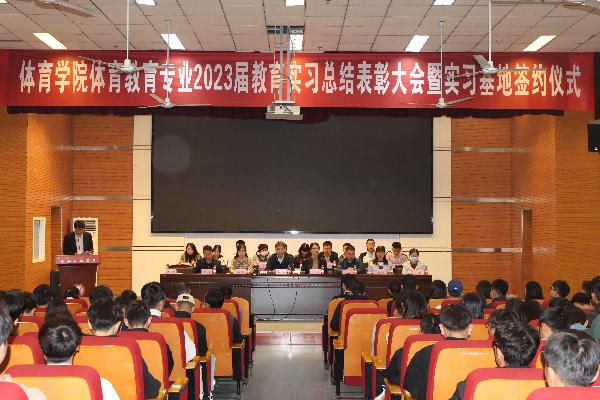 5月10日下午,伟德国际victor1946举办体育教育专业2023届教育实习总结表彰大会暨实习基地签约仪式。校员工处处长郑旻、人才招聘处处长杨姗姗、教务处杨琨,实习基地领导、指导教师,公司领导班子成员、全体教师及二三四年级全体员工。会议由伟德国际victor1946教学副经理徐佳主持。