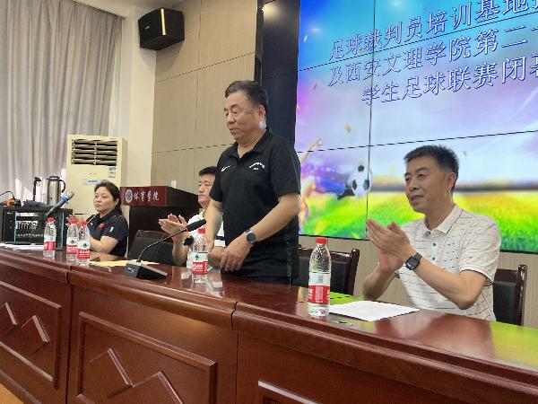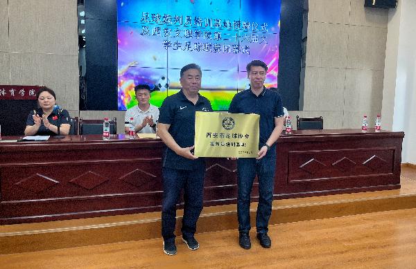 韩建华副主席代表市足协为授牌仪式作主旨发言,韩主席首先高度评价了伟德国际victor1946多年来为西安市体育事业做出的卓越贡献,为西安市足协各项工作和活动提供了强有力支持,为基层校园足球活动输送了大量团队人才。同时韩主席又介绍了中国足球协会关于培养足球事业专门人才的战略规划,高校是足球事业与人才培养的沃土,校园足球是国家大力推进青少年强健身心和精神建构的有力抓手,我们与高校积极配合推进足球事业发展是国家体育战略的重要部署,与伟德victor1946建立合作培养基地是我们的一项重要工作,今后我们还要继续强化合作,还要与贵校建立足球教练员培训基地建设等。